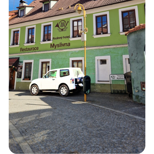 Unser Hotel liegt im Herzen von Třeboň, daher bieten wir keinen eigenen Parkplatz an. Gerne empfehlen wir Ihnen jedoch einige der öffentlich zugänglichen Parkplätze in unmittelbarer Nähe des Hotels.